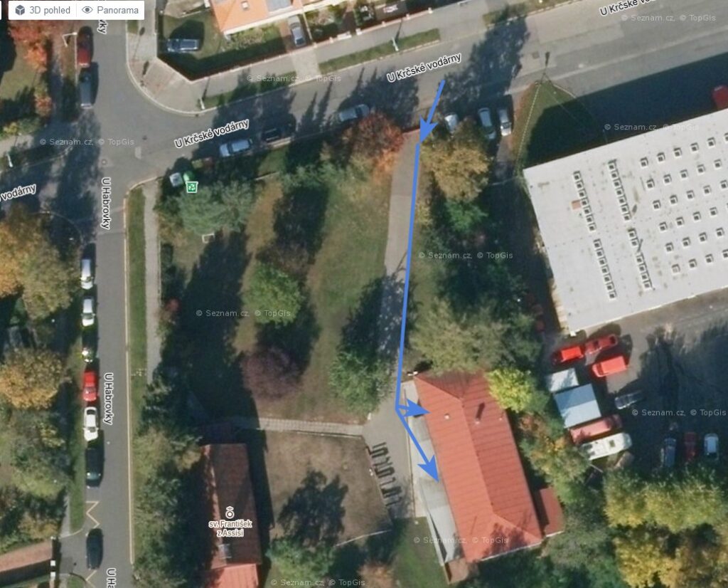 vchod z ulice U krčské vodárny (mapka dole)